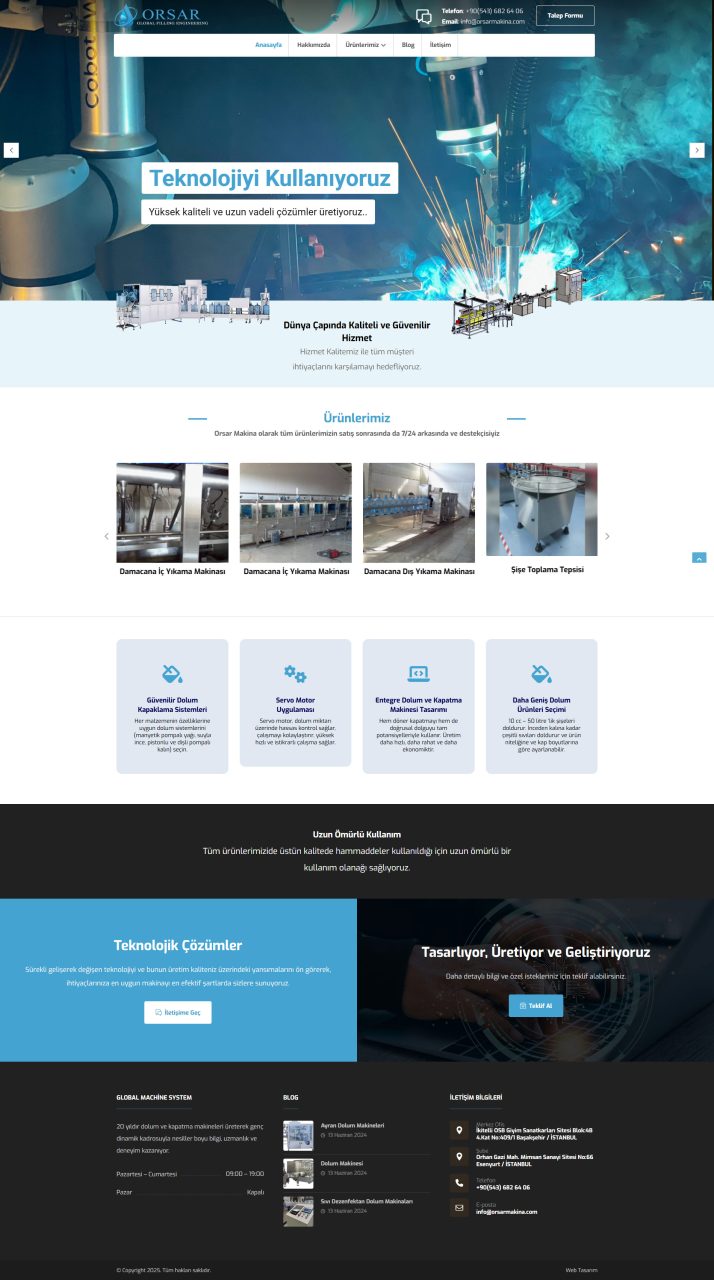 Orsar Makina için hazırladığımız bu projede, güçlü bir dijital altyapı ile markanın üretim gücünü dijital dünyaya taşıdık.